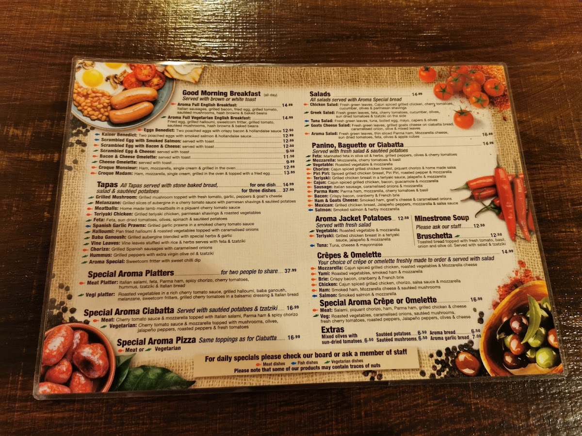 Introducing the menu at Aroma Cafe and Tapas Bar is a delightful journey into a world of flavors and creativity. Nestled in the heart of Leamington Spa, this cafe offers a menu that celebrates fresh ingredients and thoughtful preparation. Customers rave about the cajun chicken omelette loaded with roasted vegetables and brie, exemplifying the love and care put into each dish.